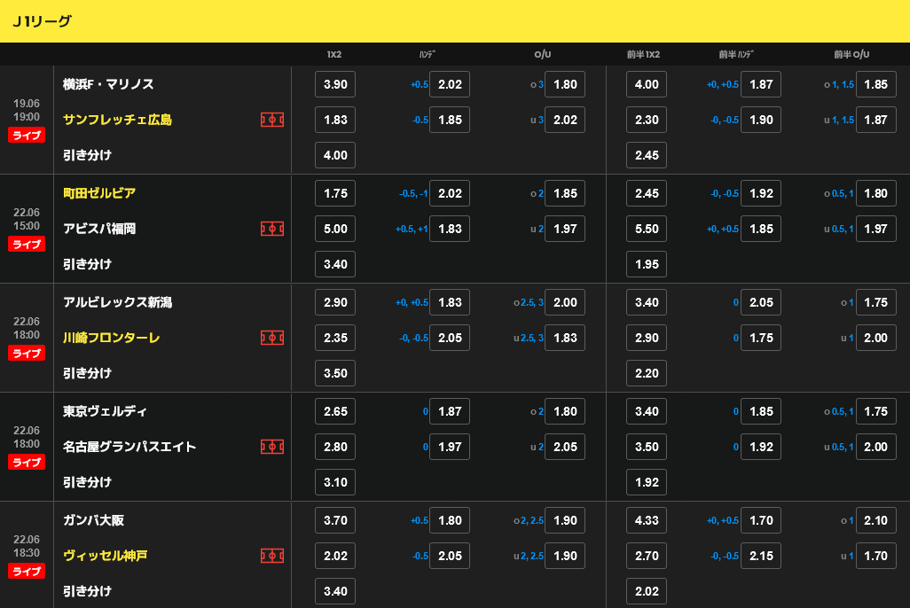 ■ ライブベット: 試合の展開を見ながらリアルタイムで賭けることができ、よりスリリングな体験が可能。